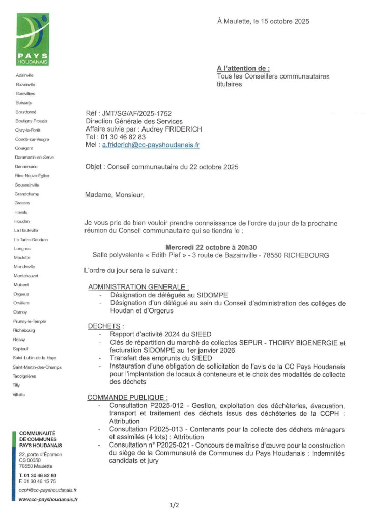 Le Pays Houdanais vous informe que le prochain Conseil Communautaire se tiendra le :